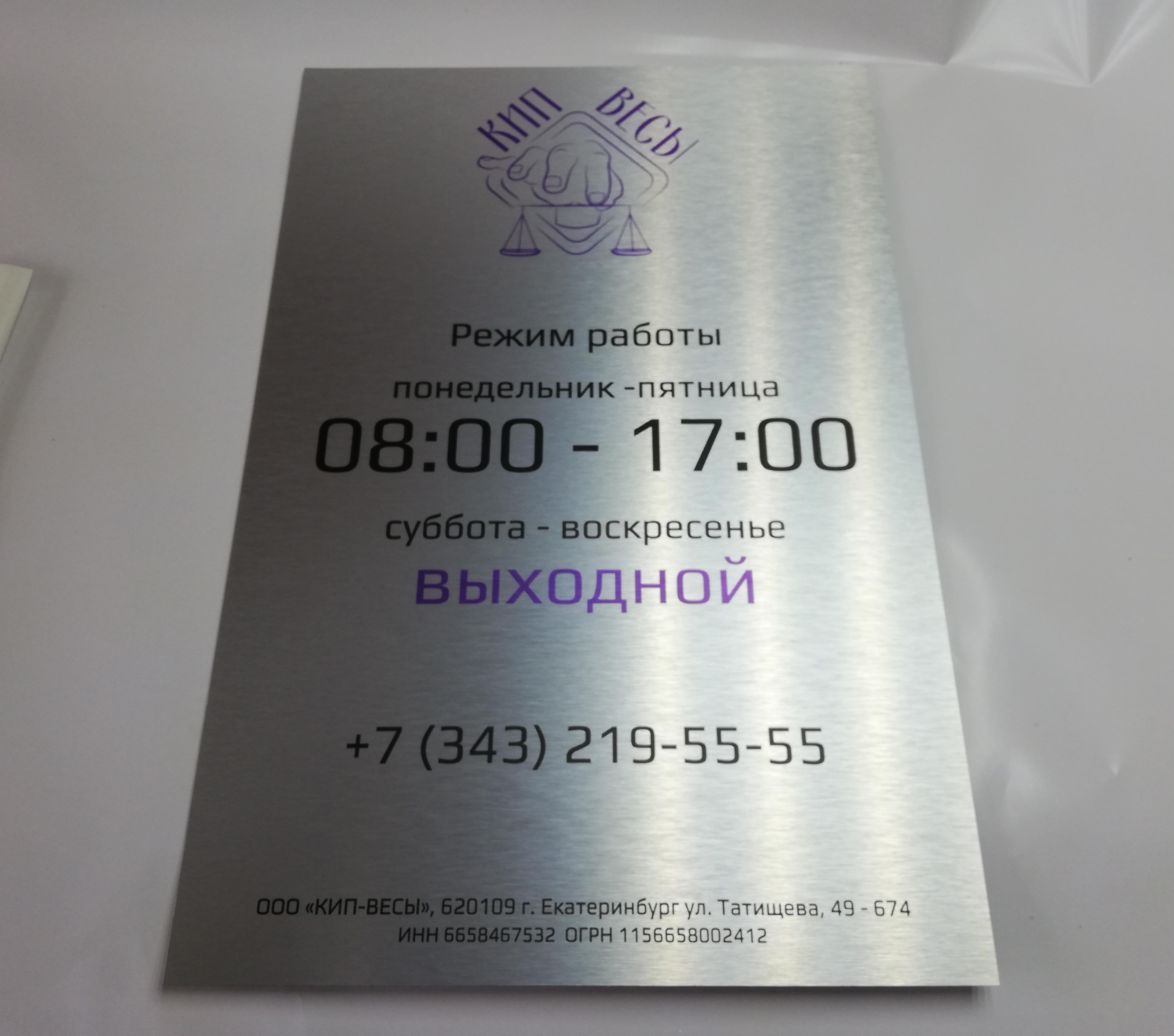 Табличка из алюминиевой композитной панели (АКП) с ультрафиолетовой печатью
