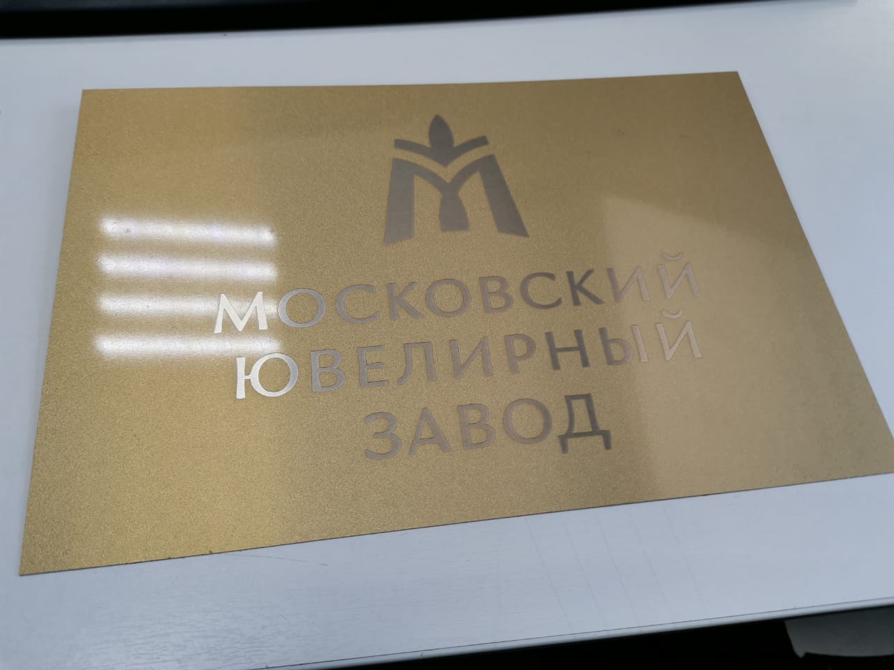 Табличка из металла с золотым покрытие и гравировкой
